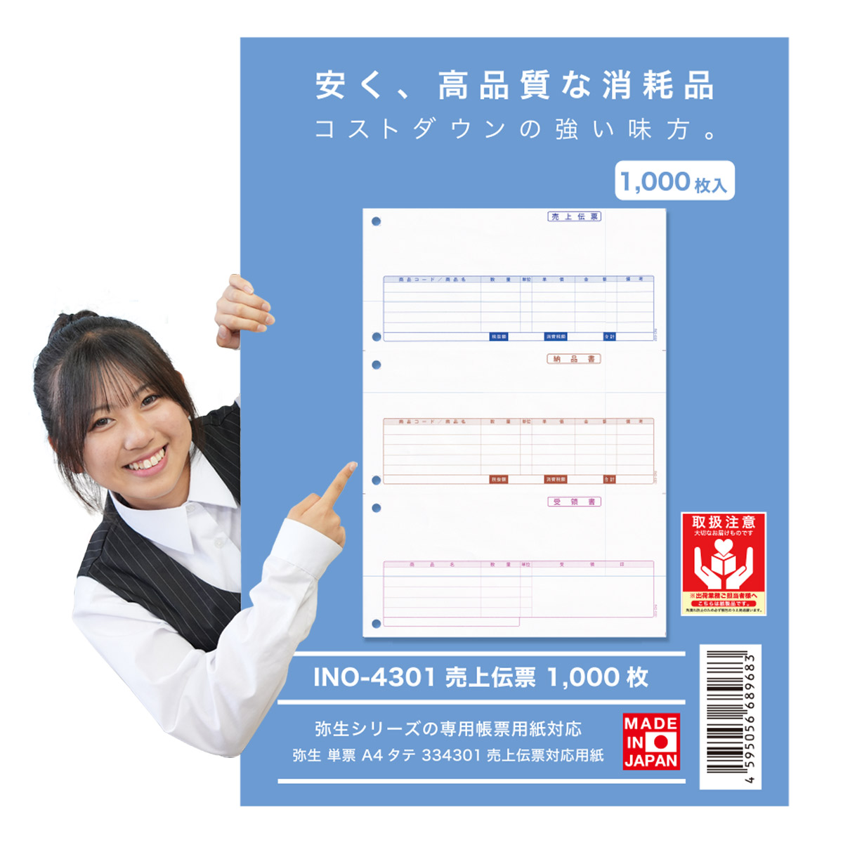 - 334301 汎用売上伝票 1000枚 品番: INO-4301 送料無料 代引き手数料無料 安心の日本製 オリジナル 伝票 業務用 弥生 やよい